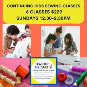 Tailored to kids that have taken Jan’s beginning sewing class or have sewing machine experience.