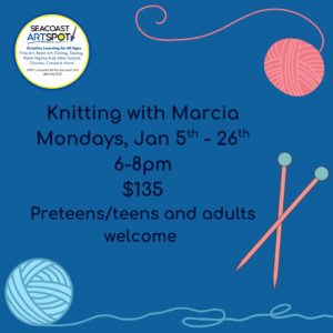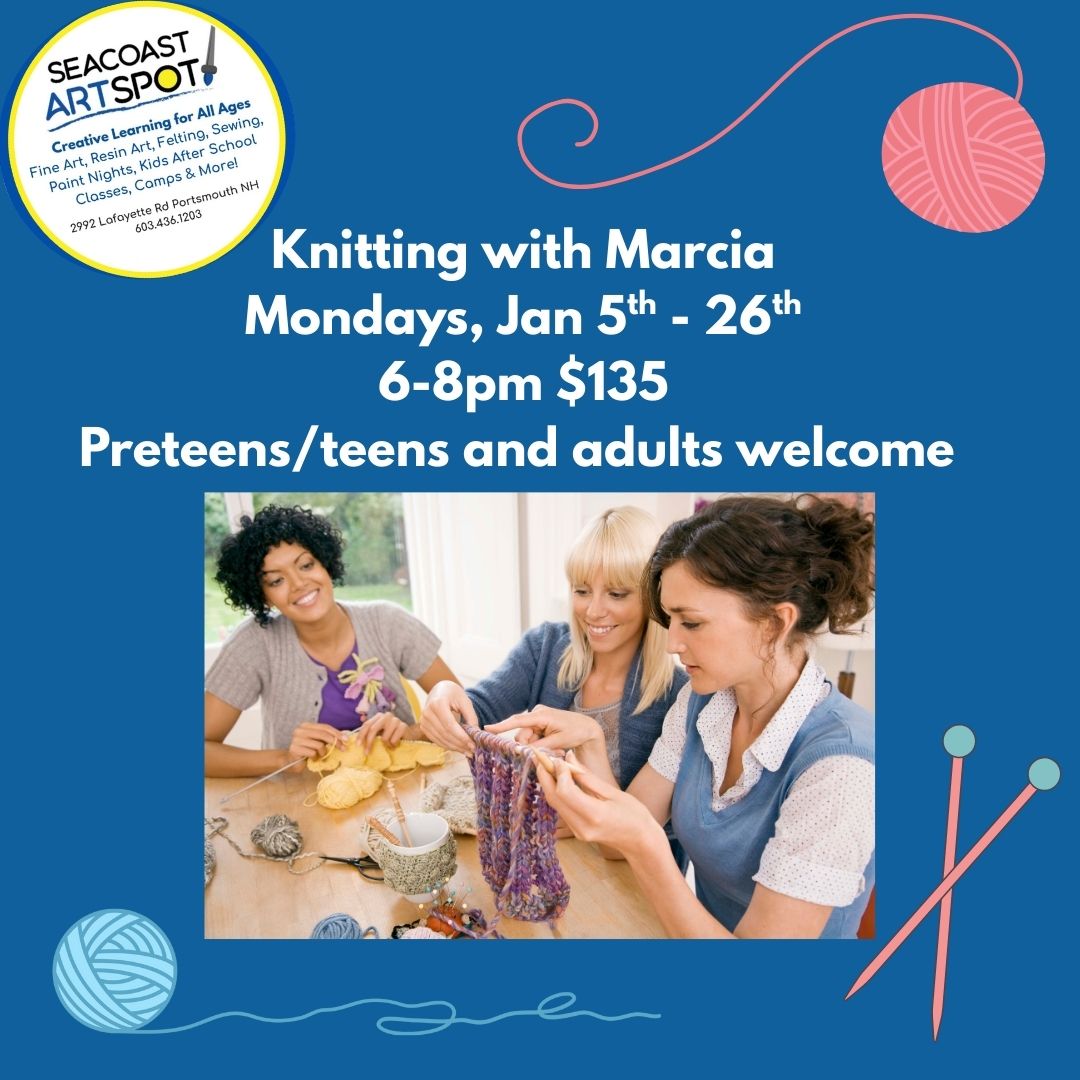 It’s time to learn to knit with Marcia in this fun knitting class! Whether you’re a complete beginner or have some basic experience, join us for a friendly, hands-on beginner knitting class for teens and adults led by experienced instructor Marcia Hansen.