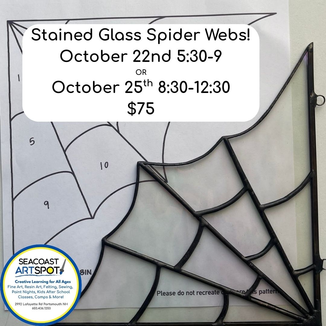 In this class you will learn the basics of creating stained glass and will leave with a completed stained glass piece. Rowena and Alex will provide you with all the tools & materials and walk you through all the steps from choosing glass, cutting, grinding and soldering. You will leave class with a stained glass spider web!