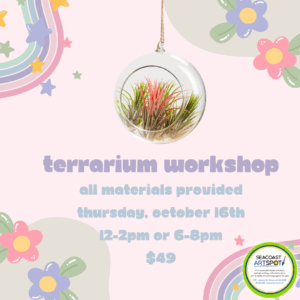 We’re a fun and innovative art space where all ages and abilities are encouraged to explore their personal creativity. At Seacoast ArtSpot, it’s not just about learning new techniques—it’s about embracing the creative process, expressing yourself freely, and joining a welcoming, supportive community by attending a terrarium workshop.